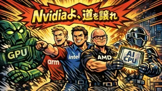 話題 Nvidiaよ、道を譲れ、次の時代が来ちまった この記事でわかること推論処理の増加でCPU需要が激増する理由Arm初の自社AI CPUとMetaとの提携IntelとAMDによる15%の製品値上げ計画NvidiaのCPU市場参入による競争の激化GPUからCPU関連銘柄へ移る投資の好機Nvi... 2026.03.28 話題